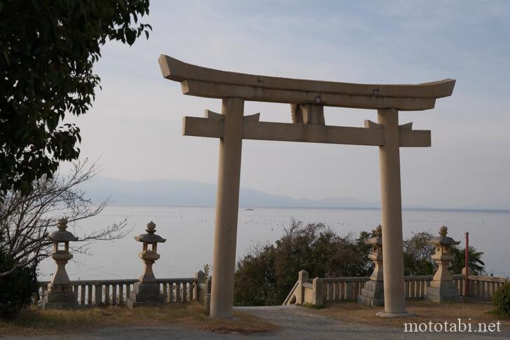 まず初めに訪れたのは、伊和都比売神社です。ここは、鳥居越しに広がる美しい海の景色が印象的な場所です。