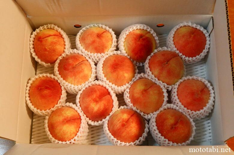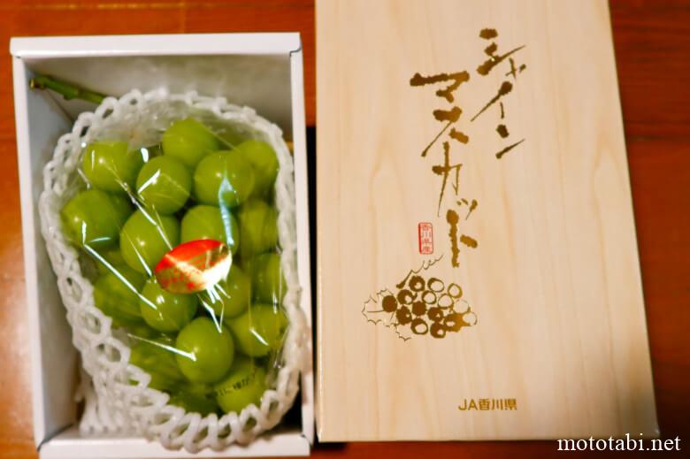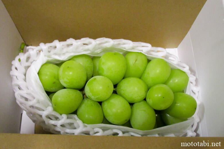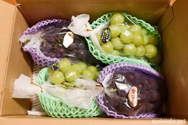 これは今年の返礼品です。桃と2番目のマスカットは、山梨の定期便。最後のシャインマスカットは香川。