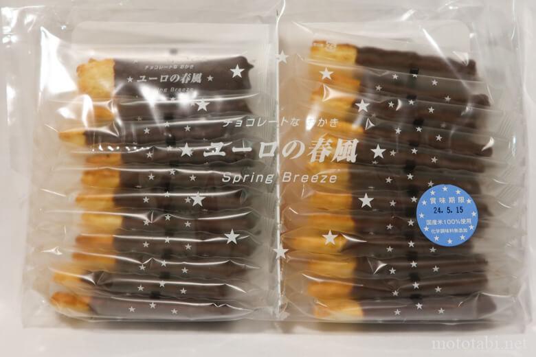 播磨屋の中で「朝日あげ」がどうやら人気のようだったので購入。そしてもう一品は、揚げせんにチョコレートがかかっているお菓子。