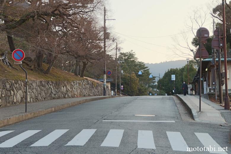 三条通りは歩行者優先につくられていますが、ここは車やバイクの通行が可能。JR奈良駅方面から一方通行です。