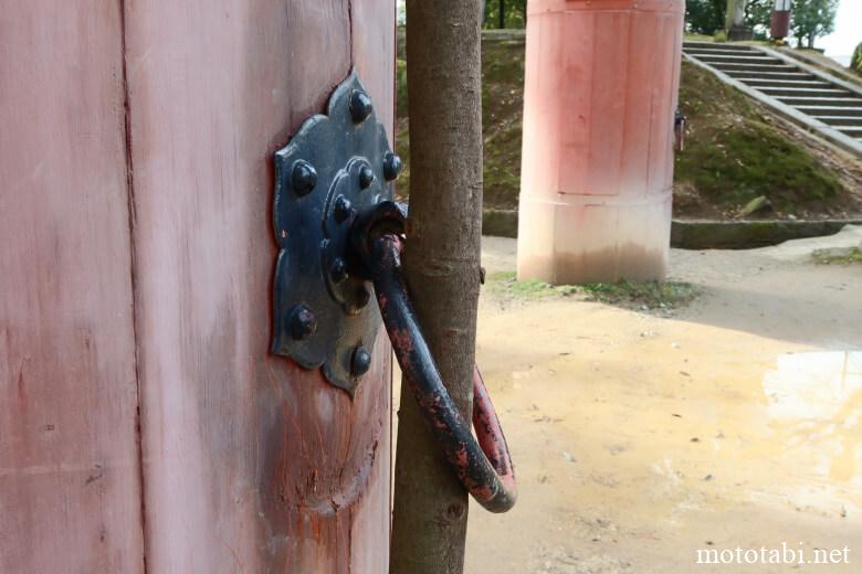 一之鳥居には、大きな鉄の輪が2個づつついています。