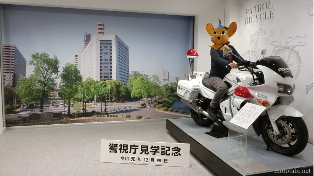 見学で写真撮影ができる場所は、警察参考室の入り口にある「ピーポくん」と警察参考室内にある「白バイ」のみでした。