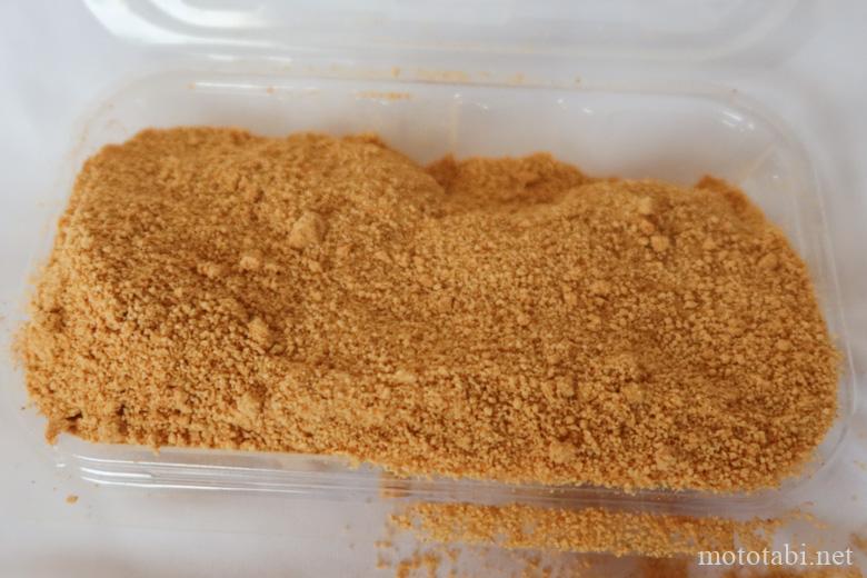 ただの「きなこ」にしか見えませんが、あべかわ餅です。餅が2個入っています。