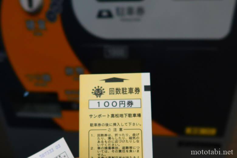 知らずにサンポート高松地下駐車場に停めました。その場合は、3千円以上の買い物で、1時間駐車料金が無料。100円券を3枚もらいました。