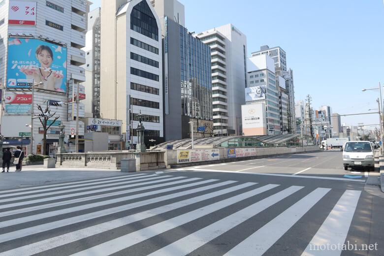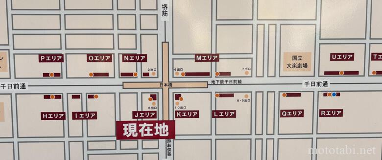 この場所の最寄り駅は、日本橋駅(にっぽんばし)です。難波まで行きたい場合は、地下(なんばウィーク)を歩くのがおすすめ。