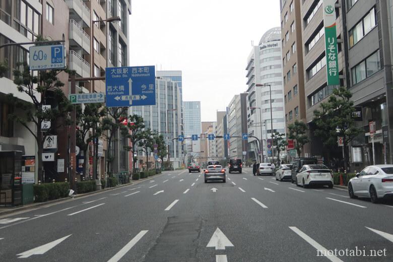 堺筋は、天王寺から北浜に向かう一方通行の道路です。