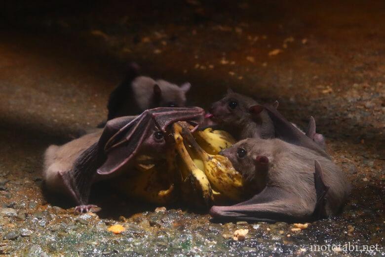 エジプトルーセットオオコウモリ、バナナやりんごなど食べます。