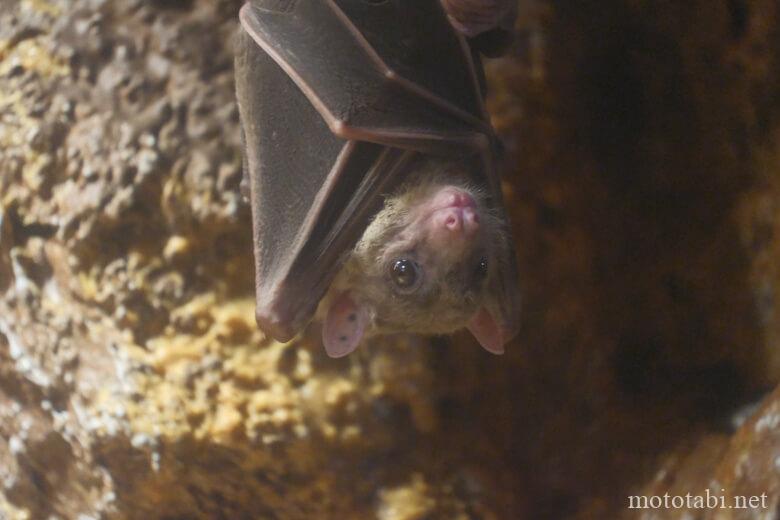 お年寄りまたは、足の悪いコウモリは、上につかまることができず、床に降りています。