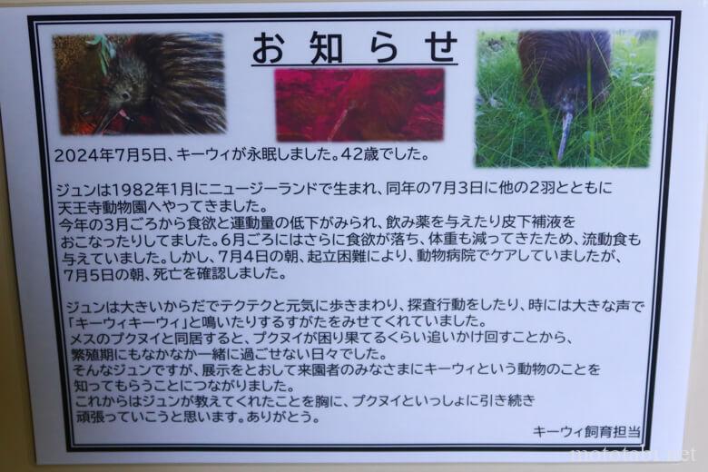 2024年7月5日に、キーウィのジュンが42歳で永眠しました。